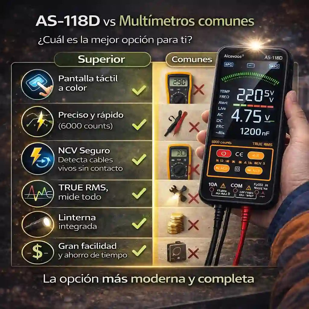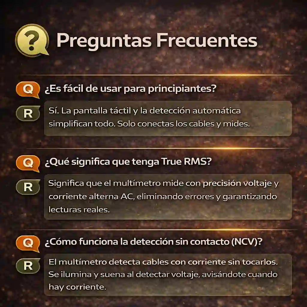 Lo compré para trabajos básicos en casa y terminó siendo mucho más de lo que esperaba. Es muy fácil de usar, la pantalla se ve perfecta y las mediciones son rápidas. Da mucha seguridad trabajar con él.”Carlo P